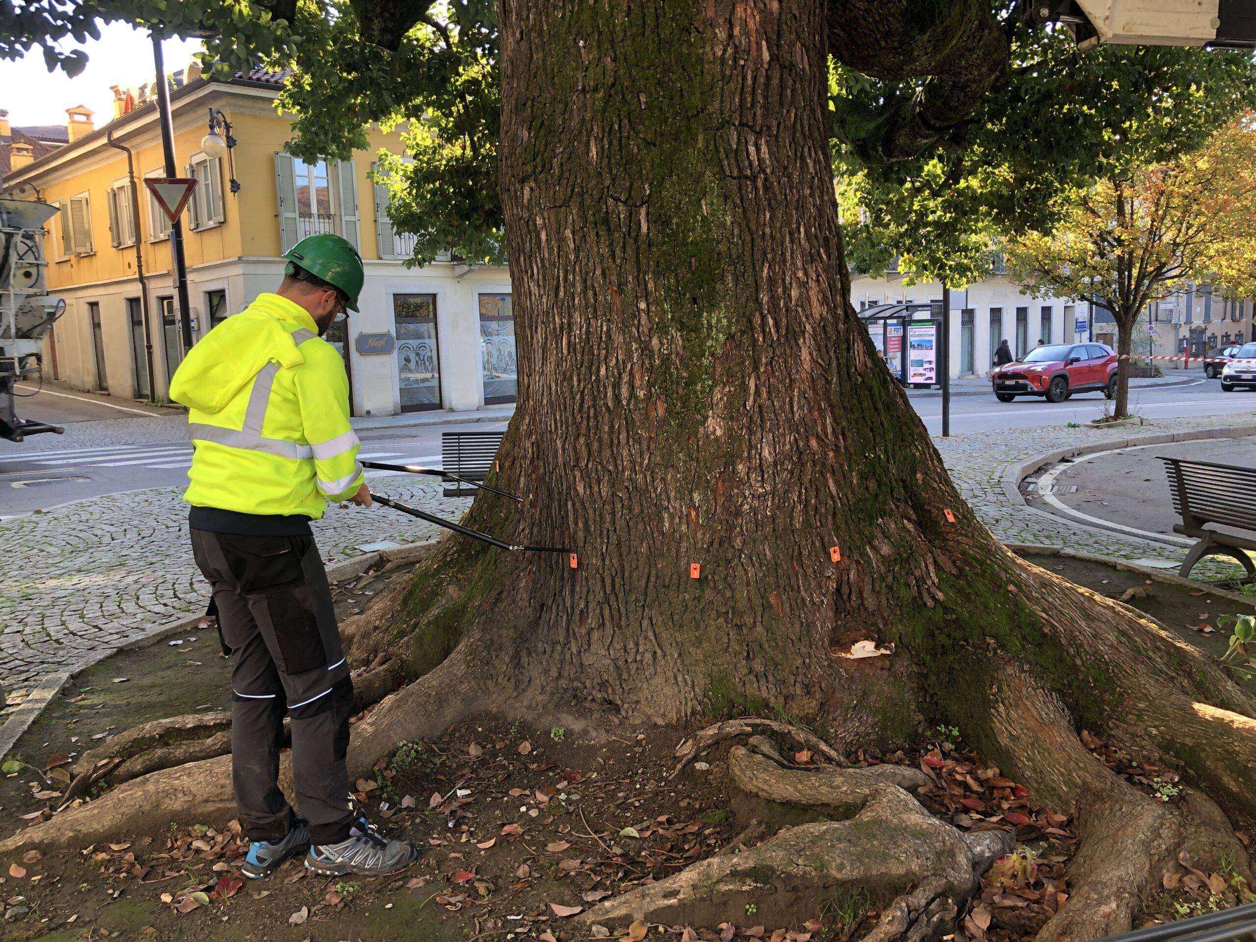 Questi referti strumentali supportano la valutazione della resistenza residua a rottura degli alberi, in particolare nelle sezioni di fusto o branche degradate da carie fungina del legno.