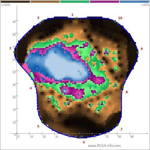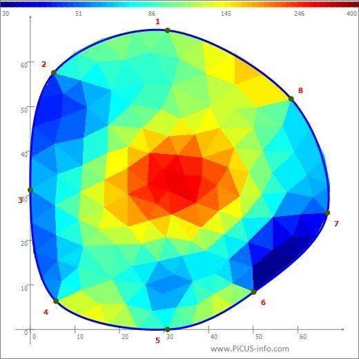 Il tomografo sonico, attraverso l’interpretazione dell’immagine colorata che riproduce l’intera sezione critica, permette al valutatore di conoscere la condizione di maggiore o minore integrità del legno anche nelle parti interne di alberi molto grandi, con diametro superiore al metro.
