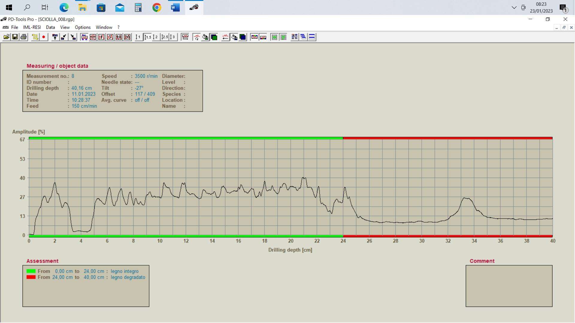Il resistograf misura puntualmente, lungo direzioni prestabilite dal monitoratore, la “resistenza a penetrazione” ovvero la densità del legno. Il risultato è visualizzato in tempo reale su grafici lineari (dendrogrammi o profili densitometrici).